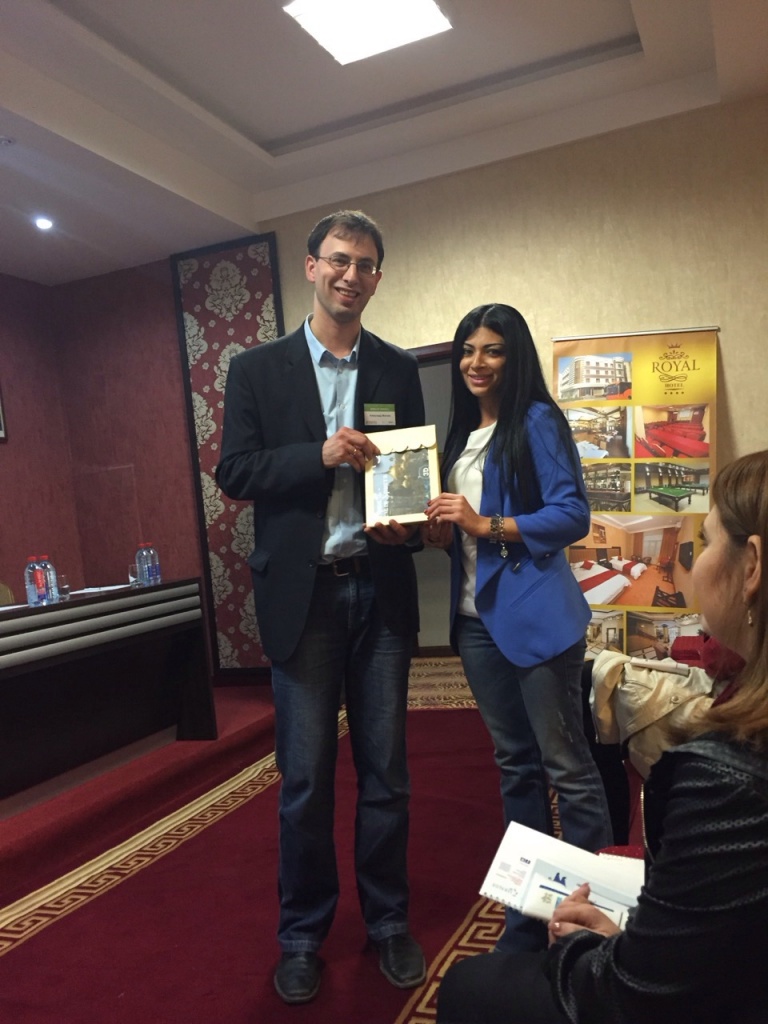 Семинар в г. Баку (Азербайджан)Мы рады сообщить, что в продолжение программы WORKSHOP "Мир без границ", который состоялся 16.04.15 в отеле "Royal Hotel" г.Баку, Российско-Израильская компания ISRALUX провела очередной семинар для туристических компаний Азербайджана "Израиль. Новые туристические возможности" и рассказала об особенностях данного направления, а так же разыграла ценные призы между участниками, такие как: косметика Мертвого моря, уникальный 3D - фотоальбом + очки, фильм о достопримечательностях Израиля. Мы поздравляем призеров и представляем вам фотоотчет! Наши представители Александр Житник и Татьяна Куриленко